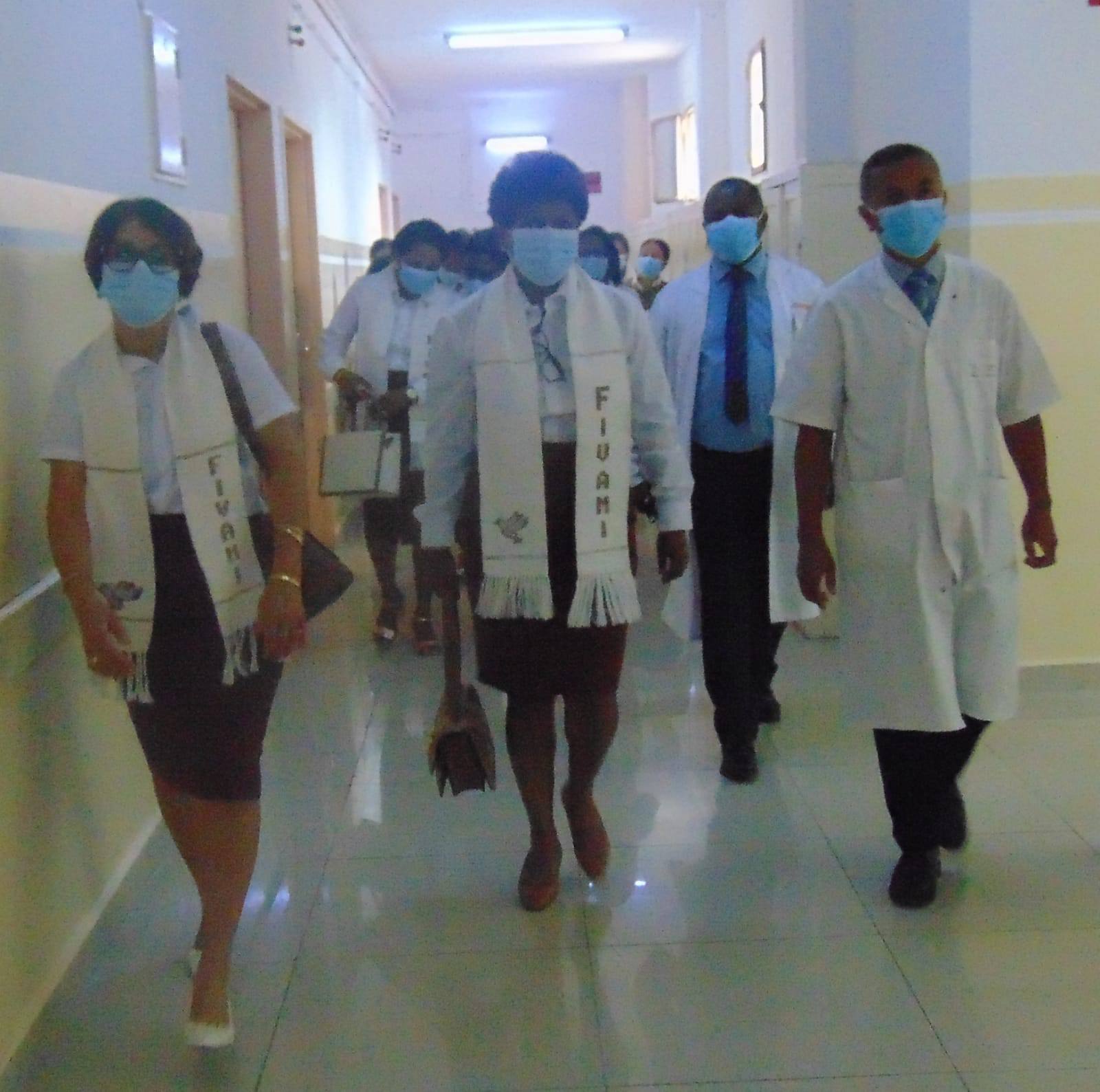 fanolorana tamin'ny fomba ofisialy ireo "rideaux" tamin'ireo tomponandraikitra eo anivon'ny Hopitaly ary nitohy tamin'ny fitsidihana ireo efitrano nametahana izany ny asa soa.