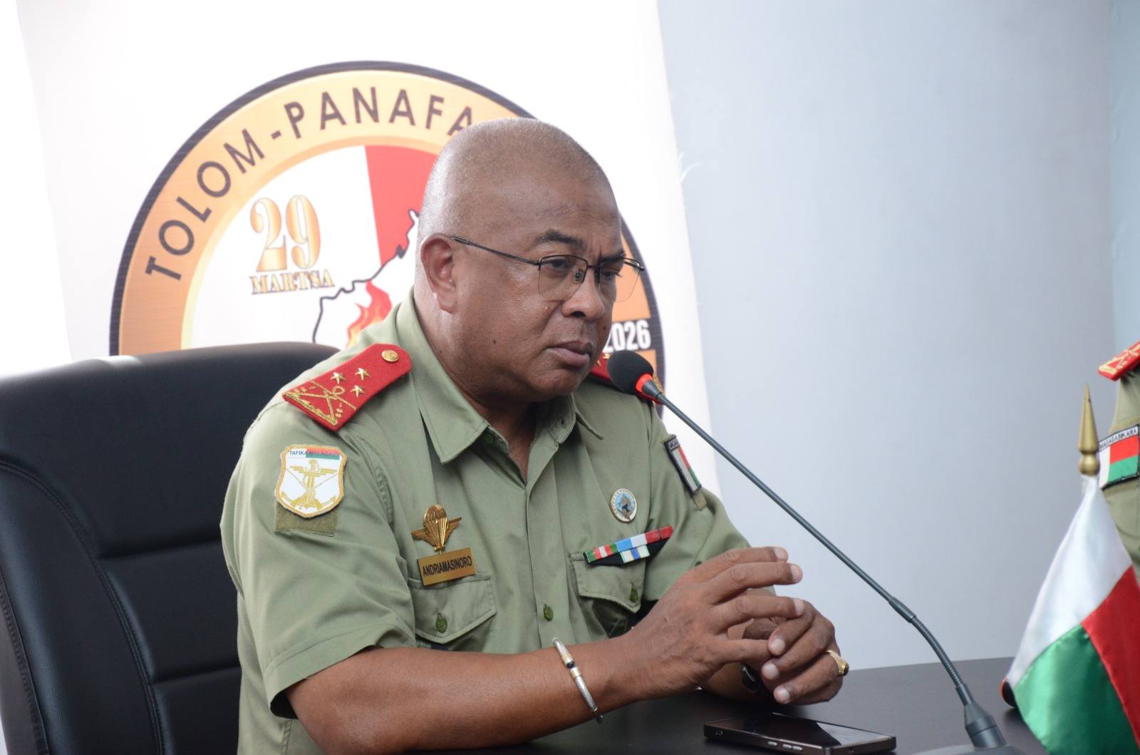 Nitarika ny fotoana ny Jeneraly ANDRIAMASINORO Fanjanirina, Sekretera Jeneralin'ny Minisiteran'ny Foloalindahy niaraka tamin'ny Jeneraly RAHARIJAONA Faly Michel, Tale Jeneralin'ny Ratsamangaikan'ny Fiarovana na " Direction Générale des Organismes de Défense" (DGOD) eto anivon’ny Minisiteran’ny Foloalindahy sy ny Jeneraly RANDRIANANTENAINA Emilson, Tale mpiahy ny Mpiady Tia Tanindrazana na " Direction des Combattants Nationalistes" (DCN), notronon’ireo mpikambana mandrafitra ny komity teknika mpanomana ny fahatsiarovana ny 29 martsa. Nambaran' Andriamatoa Sekretera Jeneralin'ny Minisiteran'ny Foloalindahy fa fotoana hanamafisan'ny olom-pirenena tsirairay ny fitiavan-tanindrazana izao, indrindra ireo mpianatra sy ny tanora, izay ho avin'ny firenena. Nirary soa ny rehetra ihany koa ny tenany hazoto amin'ny fanatanterahana ireo hetsika maro samihafa entina manamarika izany daty manan-tantara izany.