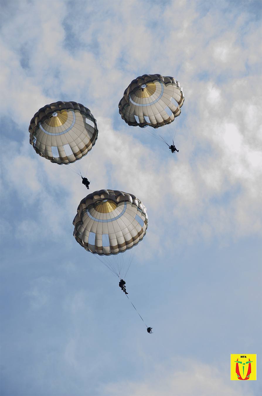 Ny tolakandro dia nisy ny fandatsahana an'elonaina notontosaina teny amin'ny toerana fanaovana izany tao "Saint-Pierre" izay nandraisan'ny Tafika frantsay, malagasy, avy any Seychelles, Maurice ary Comores anjara. Nisy moa ny filatsahana tamin'ny elonaina entin'olo-tokana ary nisy ny nandeha roa na "tandem", ka anisan'ny nilatsaka tamin'ity faharoa ity ilay mpiantsehatra eo amin'ny tambajotra-tserasera Malagasy🇲🇬 malaza, Aaron Ramanase. Taorian'izay dia natao sary naratra izy ka notsaboina sy notaterina tamin'ny fiara mpitatitra marary tsy laitran'ny bala, nafindra tamin'ny angidimby ary nentina teny amin'ny sambo lehibe "Dixmude" mba hotsaboina. Ankoatra ny filatsahana an'elonaina dia nisy ihany koa ny fampiasana "drones" ho fisavana lalana ireo toerana tokony alehan'ny Miaramila sy ny Tafika. Malagasy moa no nikirakira ireto fitaovana ireto ka nanao fampisehoana izany fahaiza-manao izany izy ireo teo imason'ireo manam-pahefana avy amin'ny firenena samihafa.