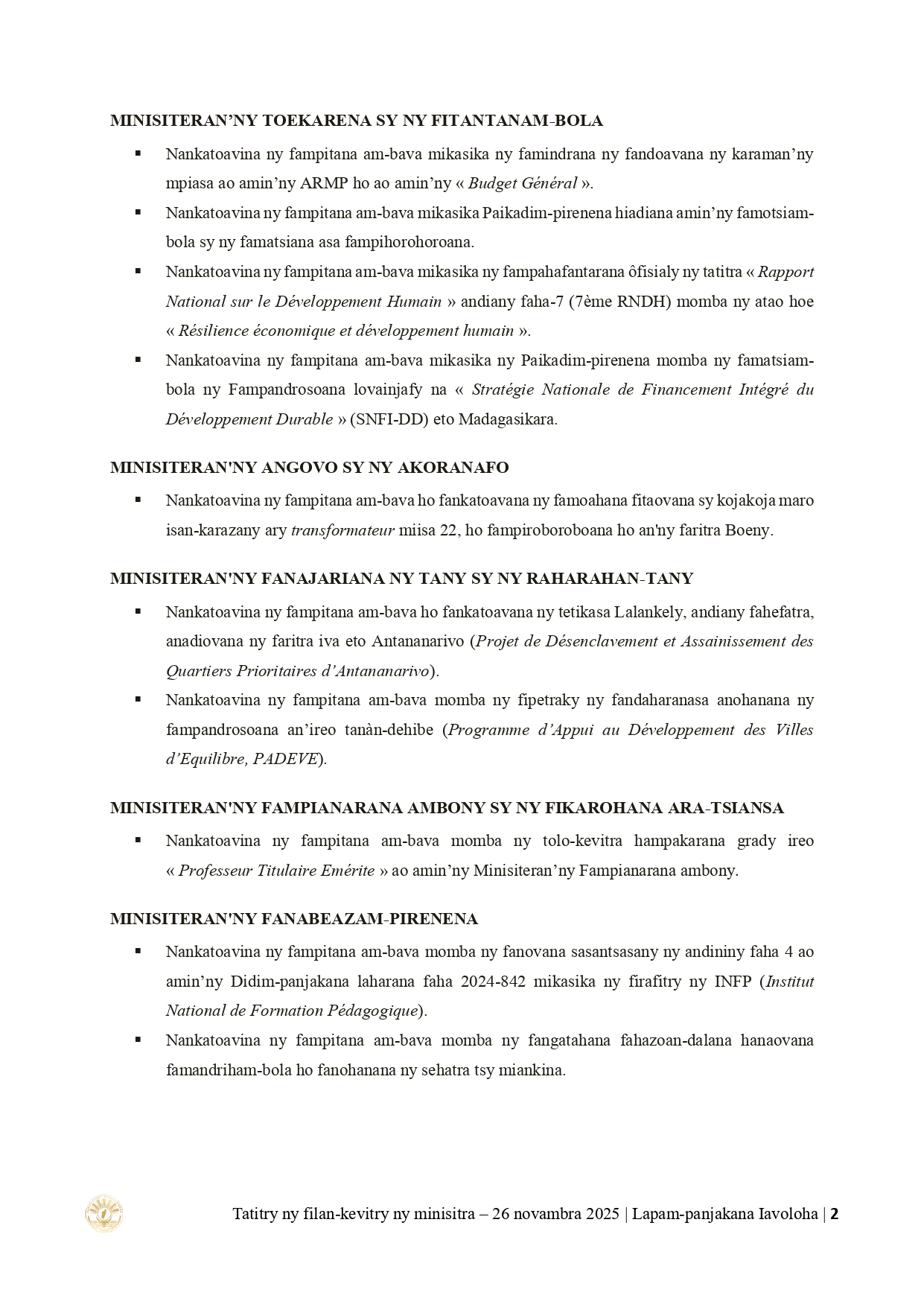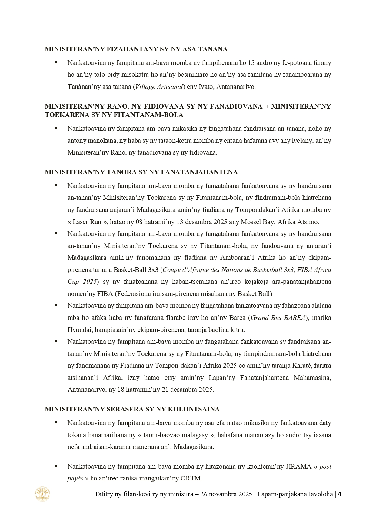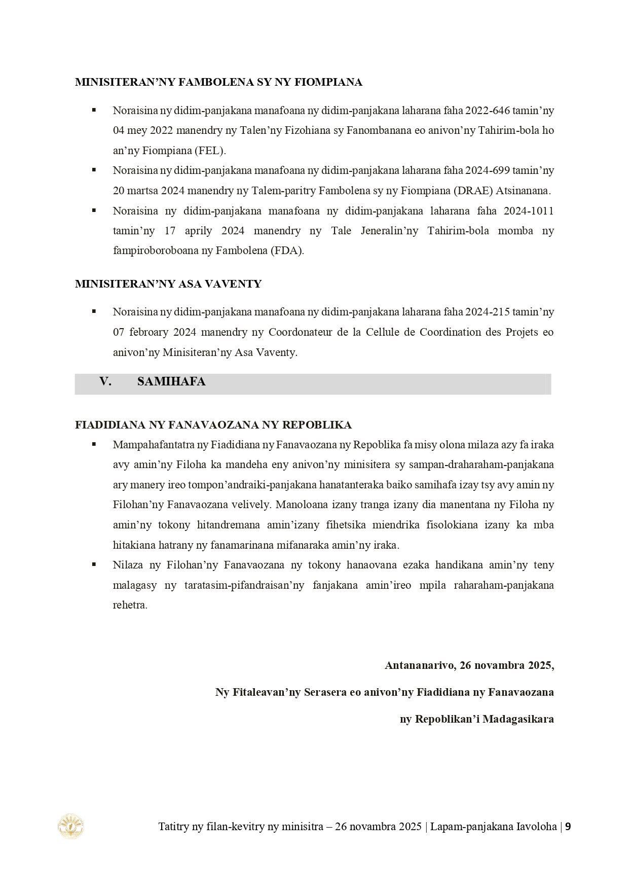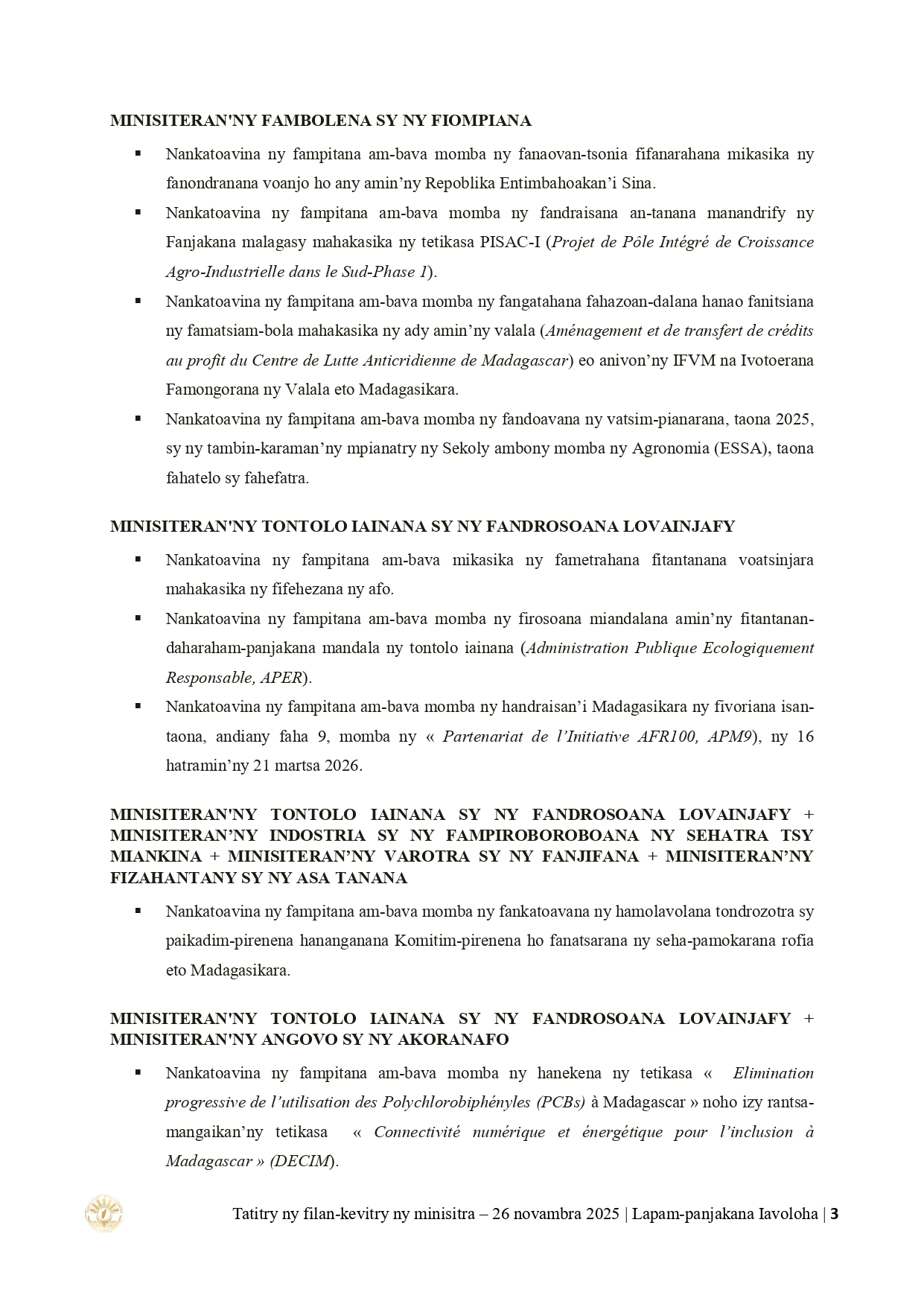 𝐓𝐀𝐓𝐈𝐓𝐑𝐘 𝐍𝐘 𝐅𝐈𝐋𝐀𝐍𝐊𝐄𝐕𝐈𝐓𝐑𝐘 𝐍𝐘 𝐌𝐈𝐍𝐈𝐒𝐈𝐓𝐑𝐀 𝐍𝐀𝐓𝐀𝐎 𝐓𝐀𝐎 𝐀𝐌𝐈𝐍'𝐍𝐘 𝐋𝐀𝐏𝐀𝐌-𝐏𝐀𝐍𝐉𝐀𝐊𝐀𝐍𝐀 𝐈𝐀𝐕𝐎𝐋𝐎𝐇𝐀, 𝐍𝐘 𝟐𝟔 𝐍𝐎𝐕𝐀𝐌𝐁𝐑𝐀 𝟐𝟎𝟐𝟓