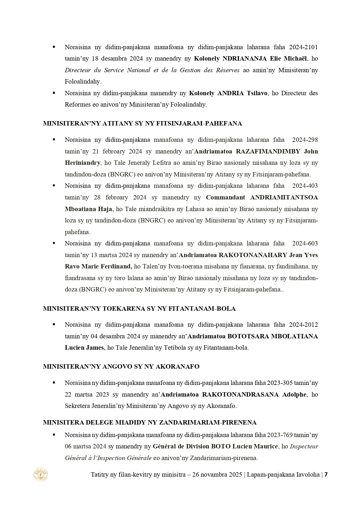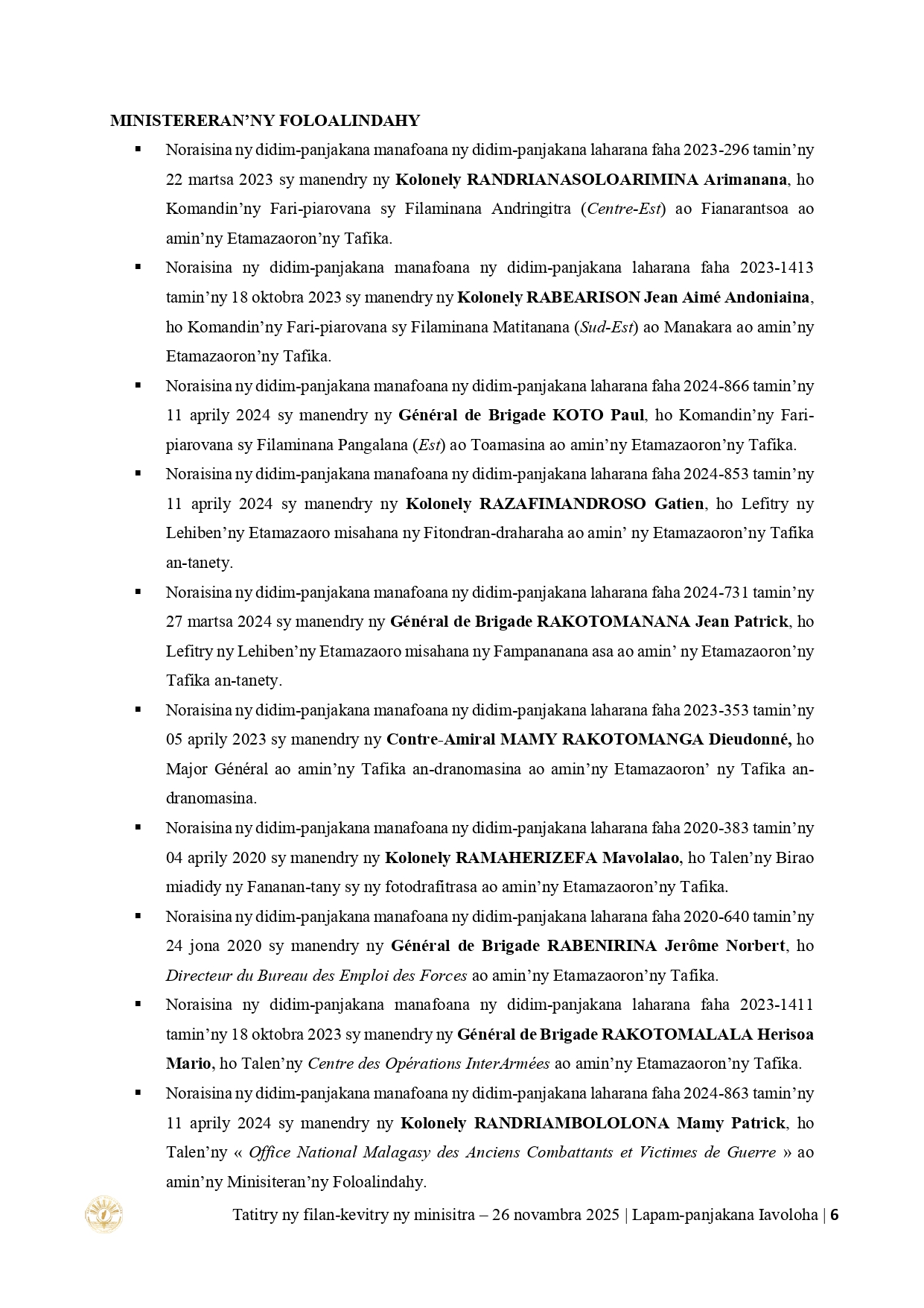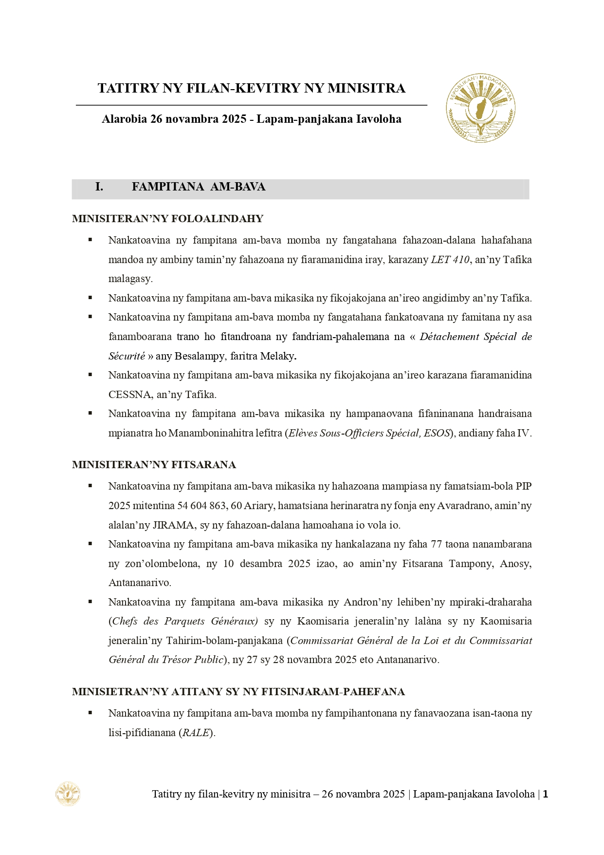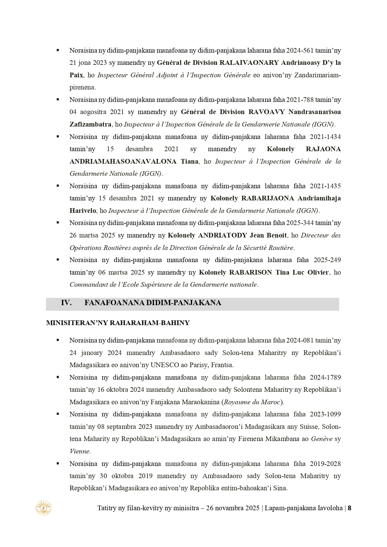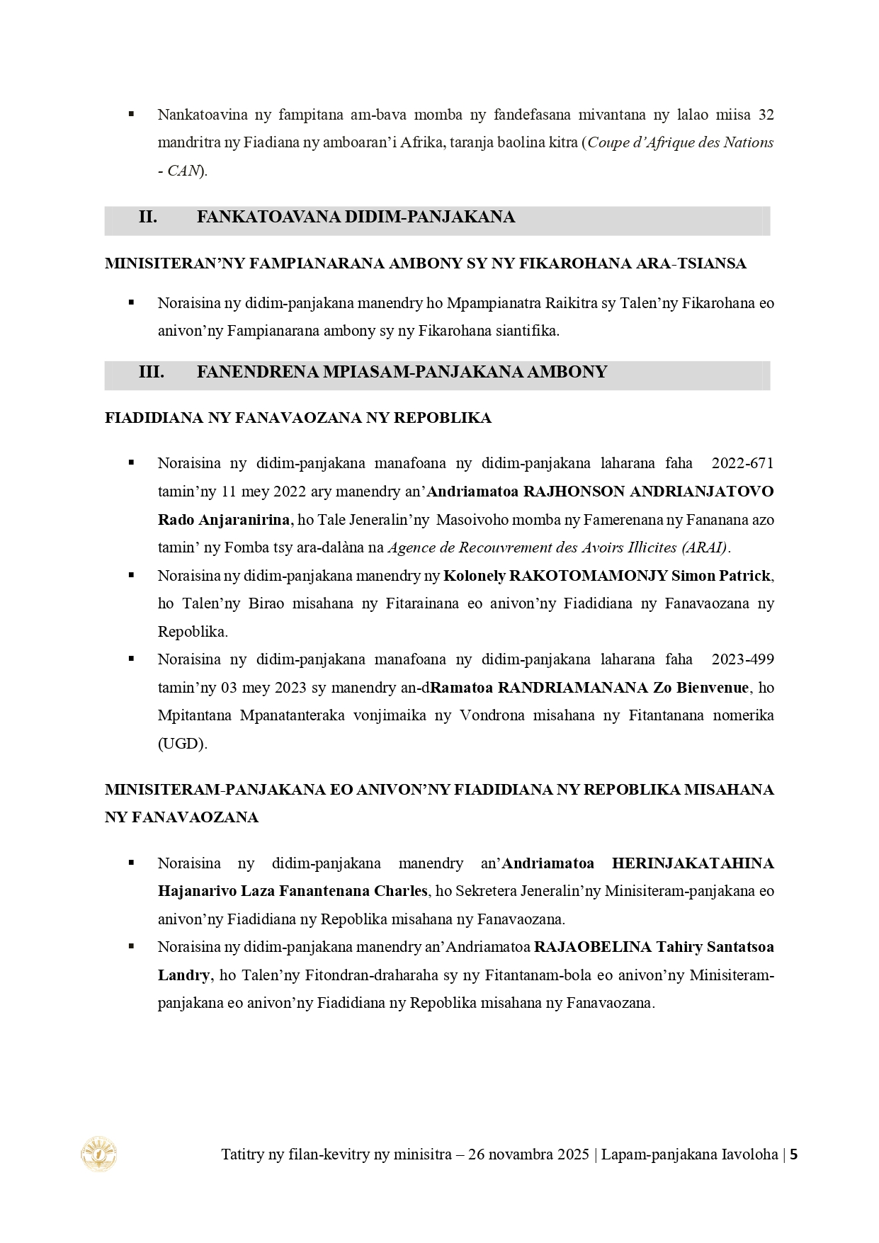 𝐓𝐀𝐓𝐈𝐓𝐑𝐘 𝐍𝐘 𝐅𝐈𝐋𝐀𝐍𝐊𝐄𝐕𝐈𝐓𝐑𝐘 𝐍𝐘 𝐌𝐈𝐍𝐈𝐒𝐈𝐓𝐑𝐀 𝐍𝐀𝐓𝐀𝐎 𝐓𝐀𝐎 𝐀𝐌𝐈𝐍'𝐍𝐘 𝐋𝐀𝐏𝐀𝐌-𝐏𝐀𝐍𝐉𝐀𝐊𝐀𝐍𝐀 𝐈𝐀𝐕𝐎𝐋𝐎𝐇𝐀, 𝐍𝐘 𝟐𝟔 𝐍𝐎𝐕𝐀𝐌𝐁𝐑𝐀 𝟐𝟎𝟐𝟓